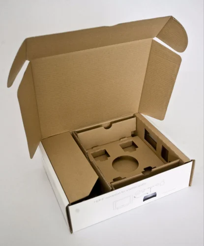 Internal corrugated cushioning protects fragile items from impact and vibration.